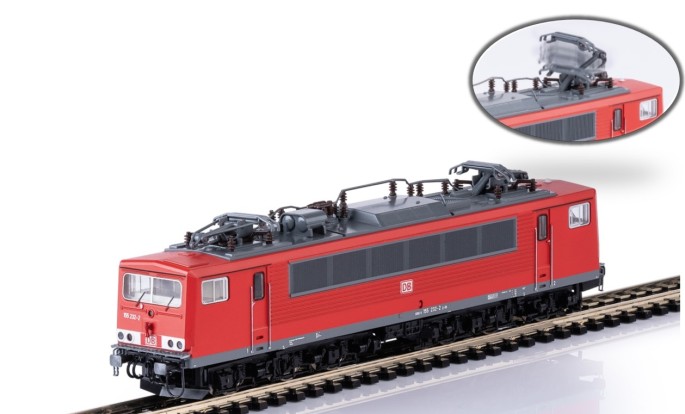 Die auch als "Energie- oder Strom-Container" bekannte Elektrolok der Baureihe 155 (ehem. DR 250) war auch bei der DB AG lange unverzichtbar. Das digitale MINITRIX-Modell bekommt nun neben zahlriechen Licht- und Soundfunktionen auch heb-und senkbare Strmabnehmer.